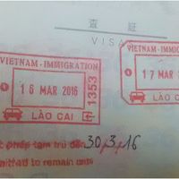 ?03.20 16時、河口に戻り雲南河口国際旅行社にVISA取得依頼(超特急500元)。当日は日曜だったため翌日12時に受領。30日以内の再入国はVISAが必要。