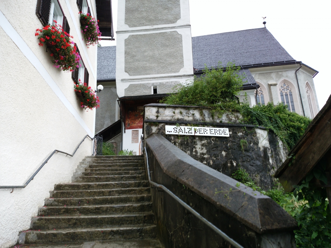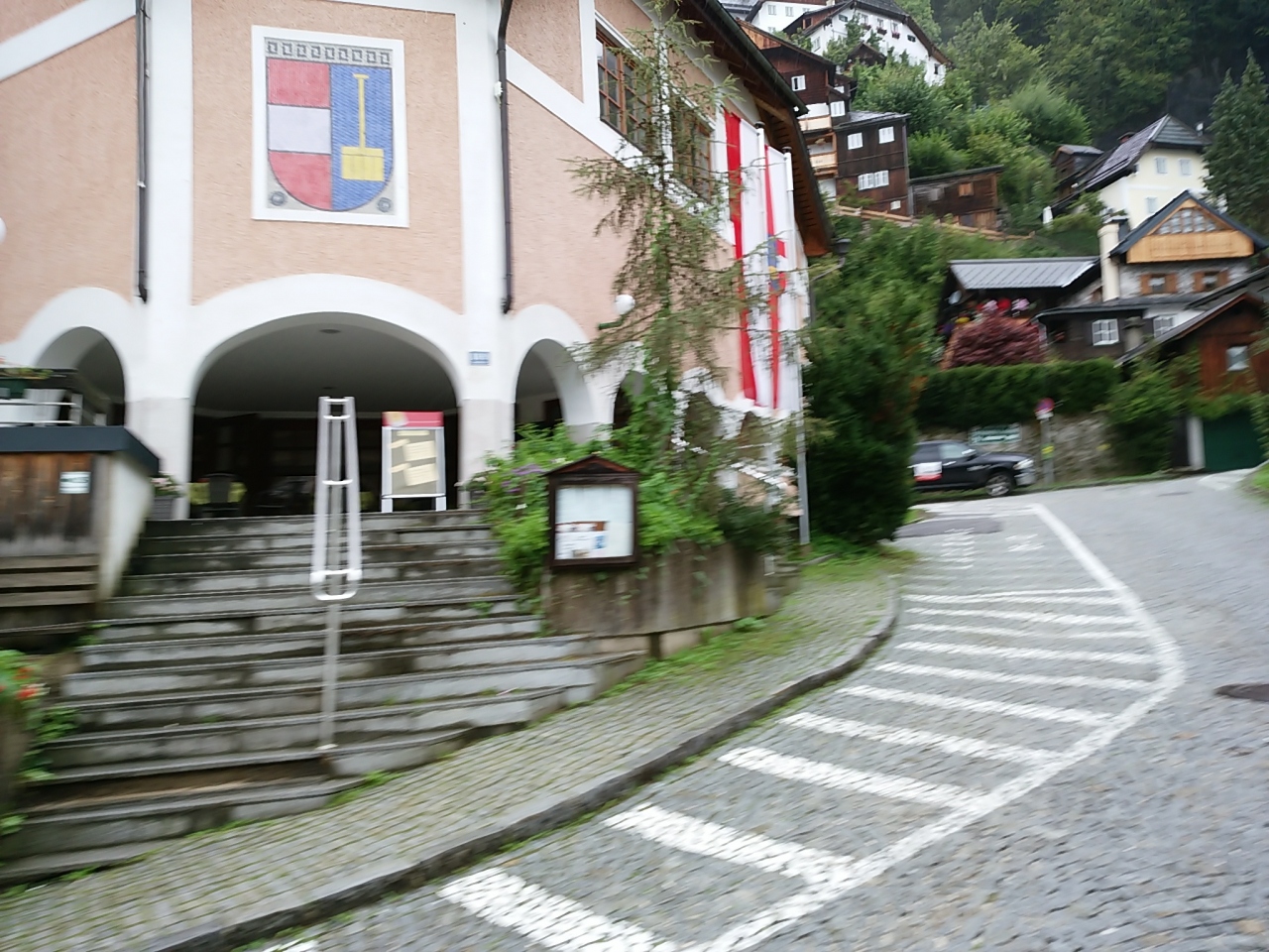 ザルツカンマーグート地方の奥、山麓にあるから天気が心配だったが、ハルシュタットの天気はくもりだった。朝のうちは雨が降ったようで、霧が発生していた。3月の最低気温より暖かかった。通りに雪がまったくなく、散策が楽だった。