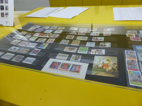 ここでは記念切手を販売しているコーナーがあり絵葉書にもそれを添付してくれました。