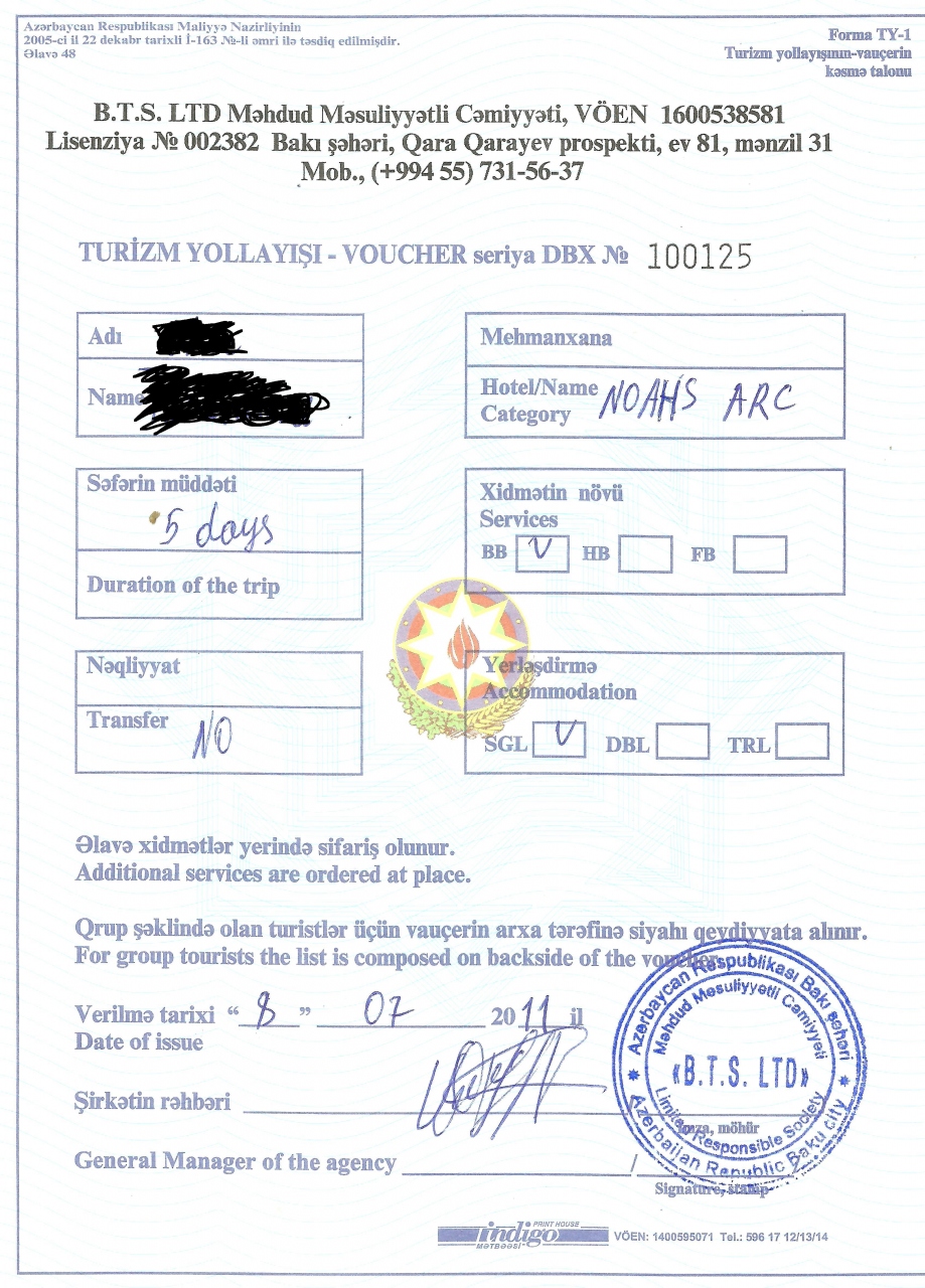 4 アゼルバイジャンにある旅行会社が発行したインビテーションレター(LOI)