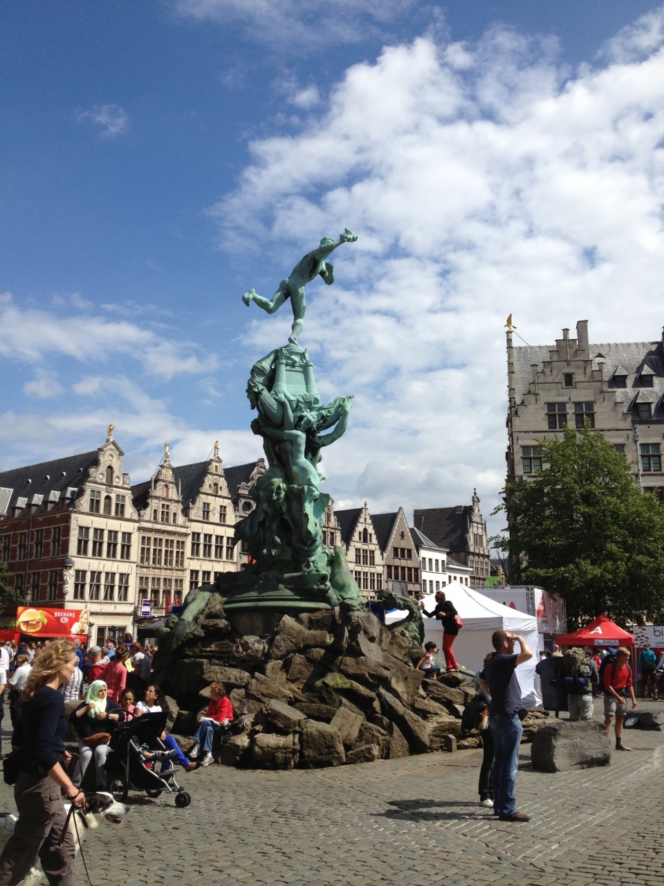 アントワープへはブリュッセルからICで日帰りしました。ブリュッセルはとても晴れていましたが、アントワープは激しい雨が降っていてびっくり。。幸い1時間ほどで晴れましたが、「シュヘルド川」が近くに流れているので風が強かったように感じました。訪問したのは真夏ですが、ブリュッセルよりも若干気温が低めだと思いました。