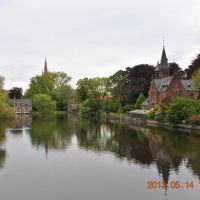 2013年5月14日にブリュッセルから鉄道を利用して日帰りしました。ブルージュ駅に10時頃に着いた時は晴れ間も覗いていましたが、愛の泉付近を散策しているうちに雨が降り出し、近くの木立の下でしばらく雨宿りをしていましたが、一向に止む気配がないので、近くのレストランで早めの昼食取っているうちに雨は上がりました。この日も肌寒く、ウインドブレーカーを着た一日でした。