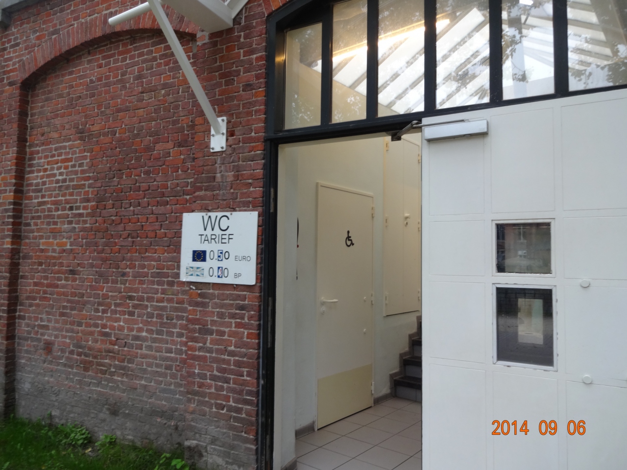 ブリュッセルと同様、ブルージュも公共トイレは有料でした。ただし、値段はブルージュの方がちょっとお安く、30~40セントの所が多かったです。ブリュッセルでは気が付きませんでしたが、ブルージュで有料のmapを買うと、トイレマークの表示もされていて、かなり助かりました。