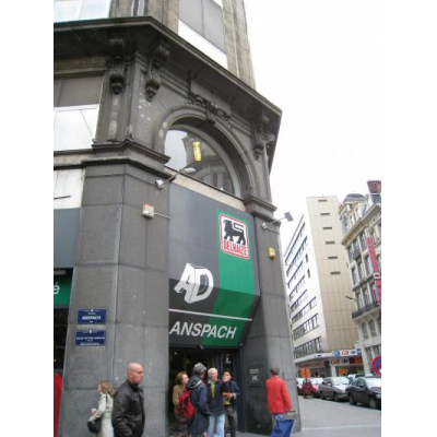 グランプラスから北西のアンスパッハ通り(Bd.Anspach)に面するスーパーマーケット