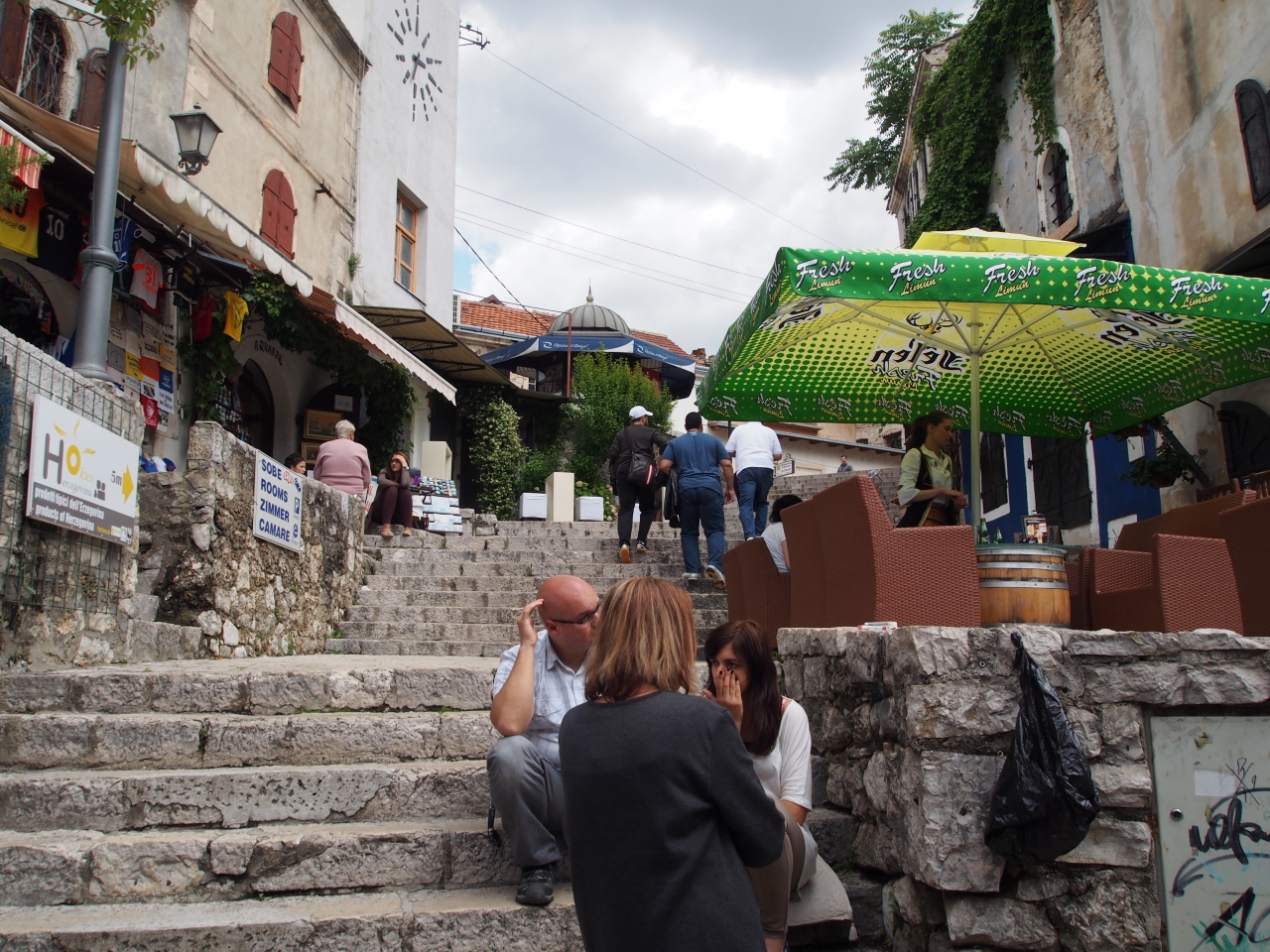 河原で写真代として10ユーロ要求されました。やはり、この地はそう遠くない過去に紛争地であったために失業率が25%もあるそうです。スタリモストあたりを歩いていると治安の悪さは感じませんが、そいうことは心に留めておいたほうがいいと思います。