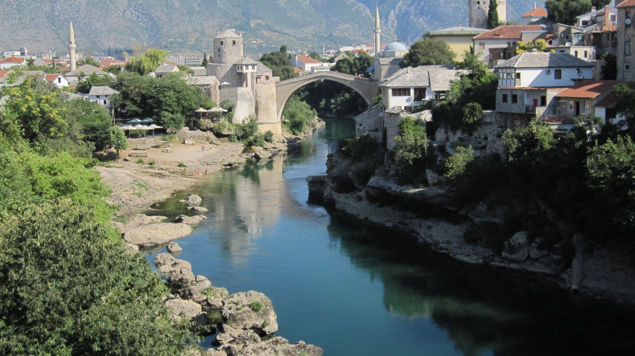 バスターミナルからスタリモストまで約1kmあります。あまりの暑さに熱中症になりそうでした。8月だったせいか35度はあったと思います。ドブロブニクとよく似た暑さでした。ただ天気が良くあの暑さと青空で写真は綺麗に撮れました。