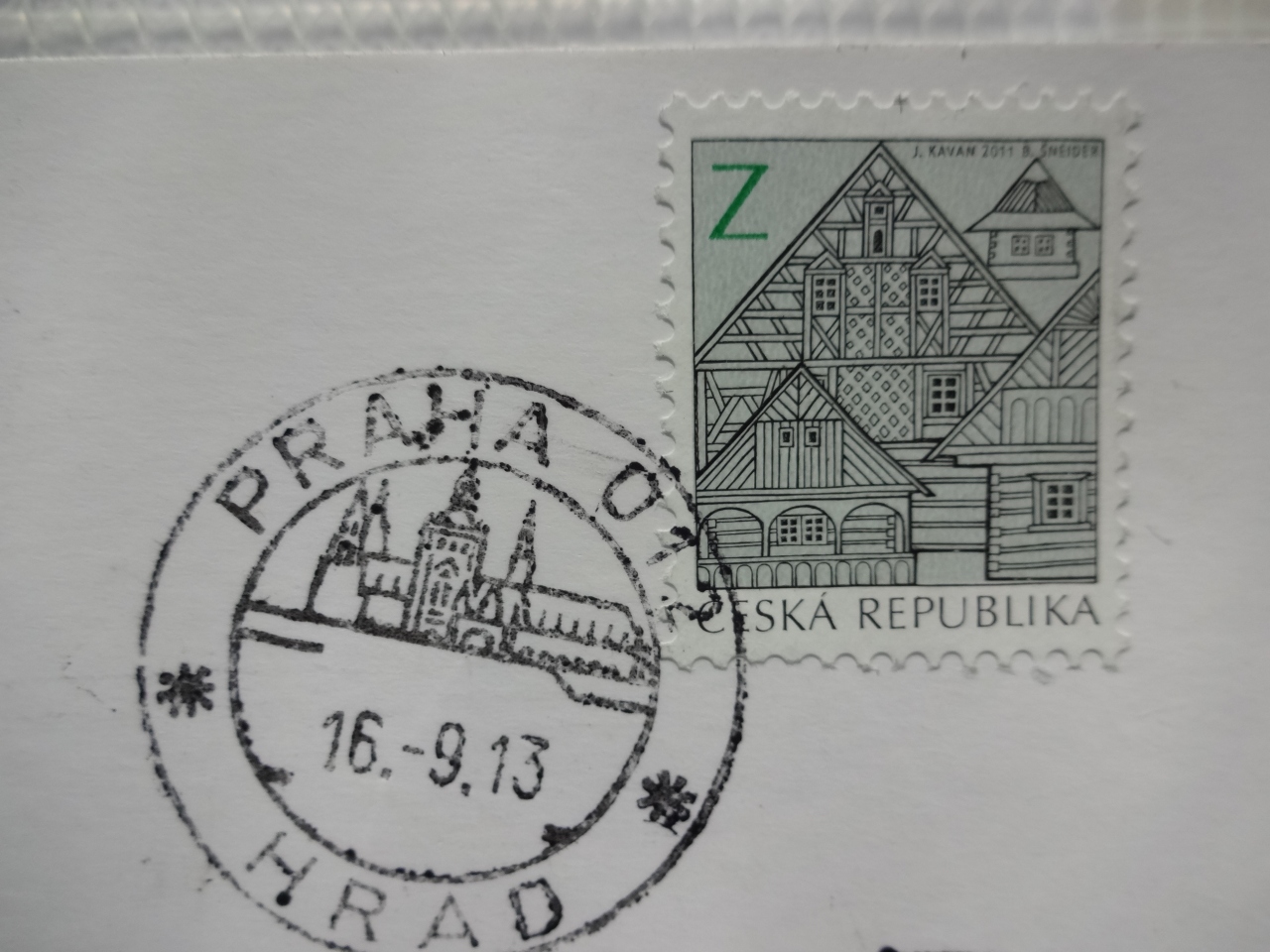 プラハ城内の郵便局やポストから送ると特別な消印を押して貰えます。ハガキを送る場合の切手は21Kc(約105円)。郵便局内でポストカードも購入できます。値段は忘れましたが切手よりだいぶ安かったはずです。