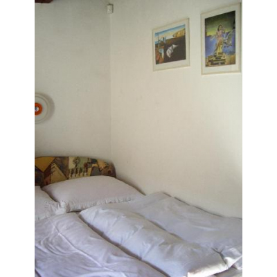 セミダブルくらいのベッド(マットレスは半分に分かれていました)に椅子とテーブル、壁にはダリの絵が2枚、テレビとクローゼット、そしてトイレとシャワーも付いていました。