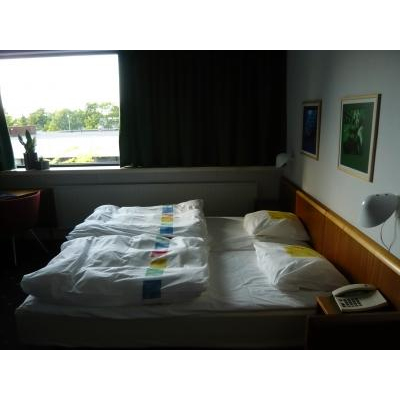 細部にいたるまでレゴで統一されたホテルです。ホテル内のあちらこちらにレゴのオブジェがあり、記念撮影スポットに事欠きません。玄関のドアボーイからレストランのコックさんまでレゴ製です。部屋は普通で、少し狭いめですが、さすがにシーツや枕もレゴプリントです。