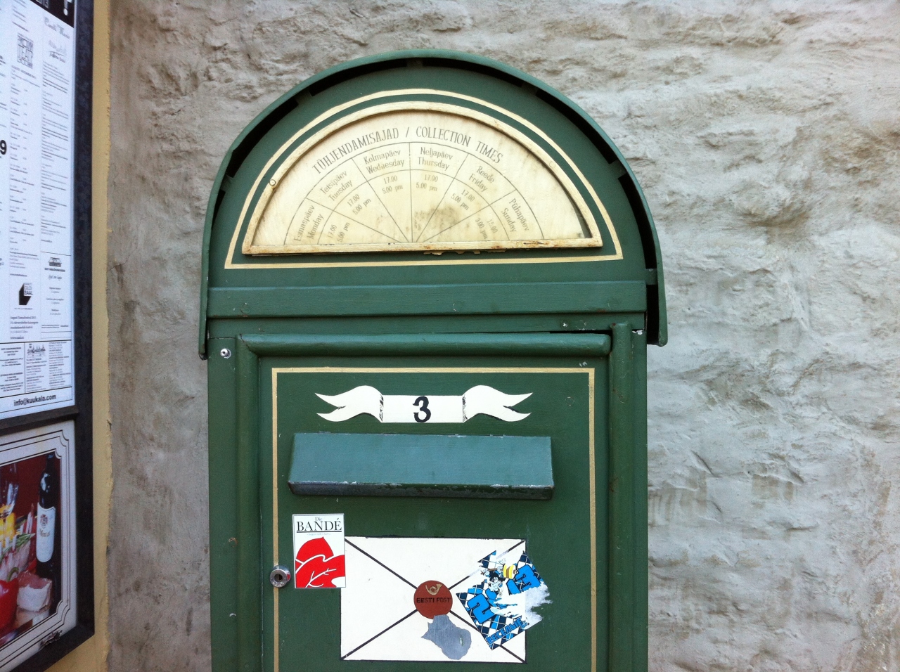 タリン旧市街のラエコヤ広場の中旧市庁舎のすぐとなりにかわいいポストを見つけました