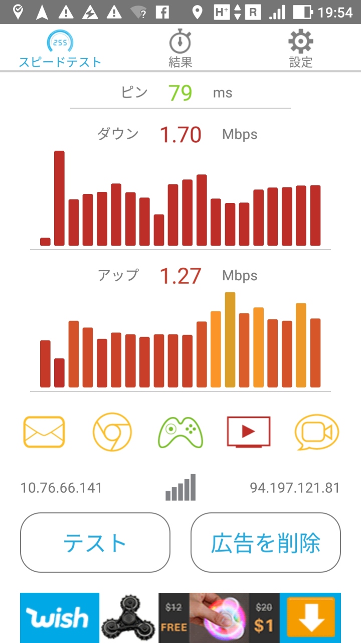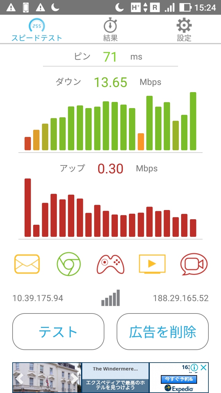 郊外の都市に行っても問題なく繋がりますが、速度は遅かったです。