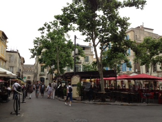 2013年6月末にアヴィニヨンを訪れました。日差しが強く、蚊も飛んでいましたが、それでも日陰は大変涼しく、風も爽やかで大変快適でした。服装は半袖がいいと思いますが、蚊も飛んでいるので、長袖でもいいかもしれません。