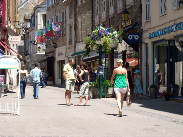 本日7月1日のボーヌの繁華街です。
