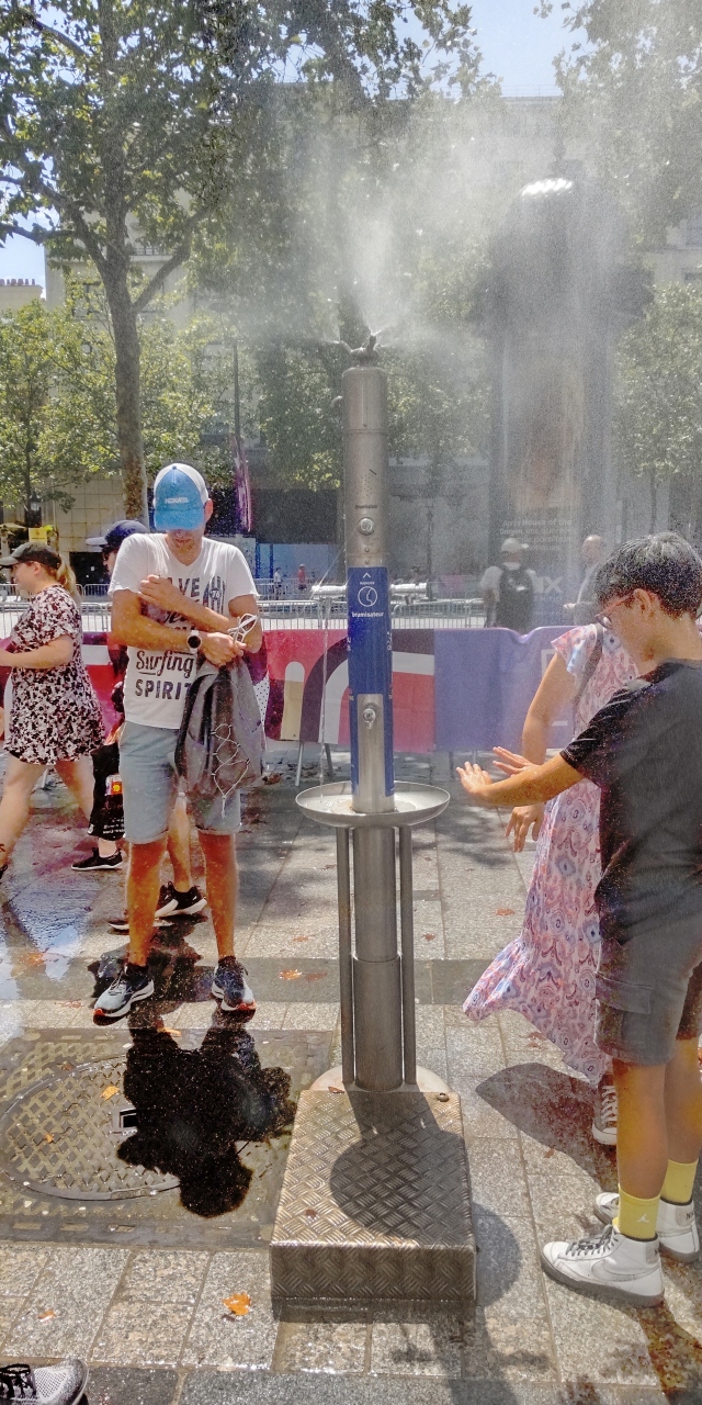 パリの公園や道路にあるポール状の水道水が飲めます。私が行った週は30度超え。買ってもいいけど、私はあまりお腹を壊さないので、パリの人と同じくペットボトルに補充してました。公衆トイレに付属の水道は飲んでいる人もいましたが、私はやめときました。