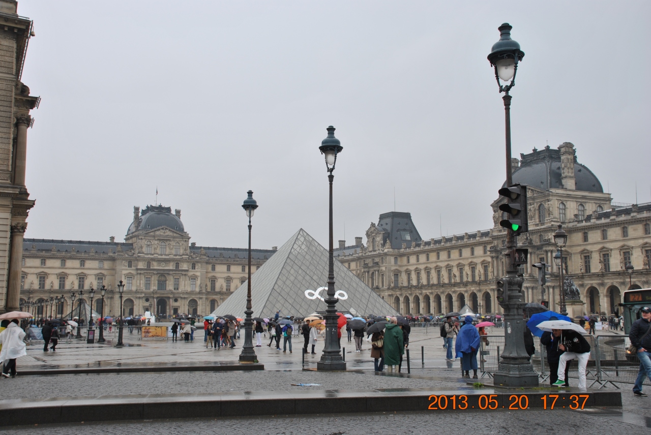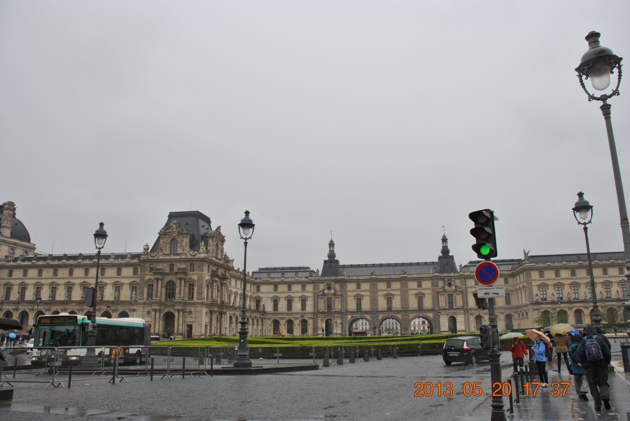 2013年5月20日の9時頃に行きましたが、この日は朝から雨。ウインドブレーカーを着こみ、美術館の入場チケットを持つ人専用ゲートから、チケット購入の長蛇の列を横目に入場。昼には外に出ましたが、まだ雨が降り続けていました。雨の中をセーヌ河畔を傘をさして散策しましたが、雨のセーヌも静かで雰囲気がありました。