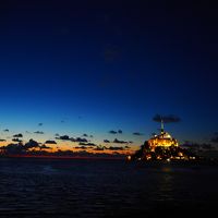 21時を過ぎると、ホッカイロがあっても寒い。でも折角だから満潮時のモン・サン・ミッシェルは見たい…ということで、橋の上で寒さに凍えながら夜景を楽しみました。