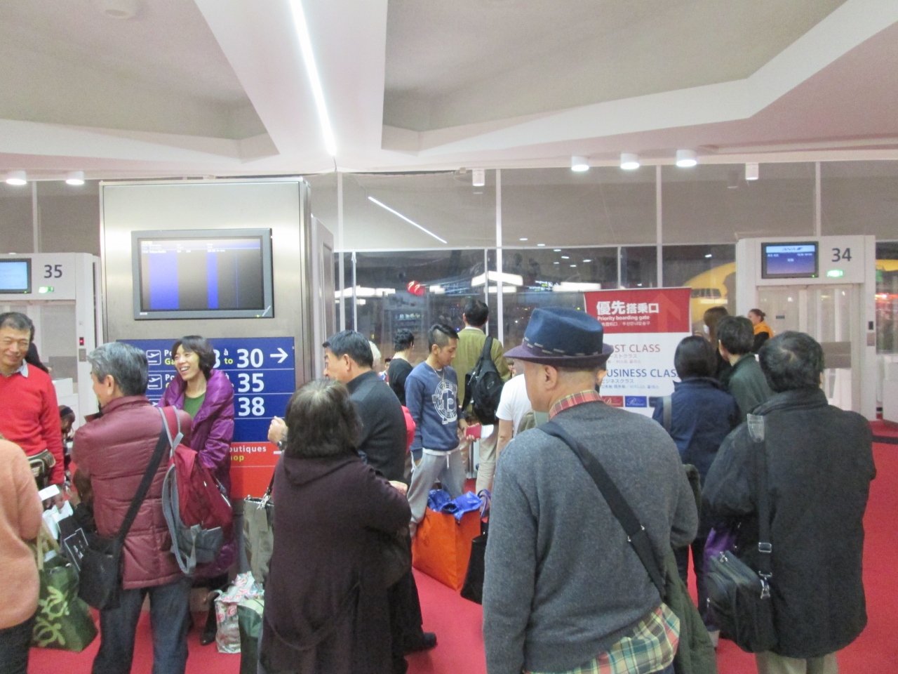 シャルルドゴール国際空港ターミナル1の出国審査場は行列ができていました。ビジネスクラス利用ということもあり、優先券をもらい待ち時間なしで出国審査を通過しました。通常の列に並んでいたら40分以上はかかりそうでしたので、搭乗手続きは早めに行うのが良いでしょう。