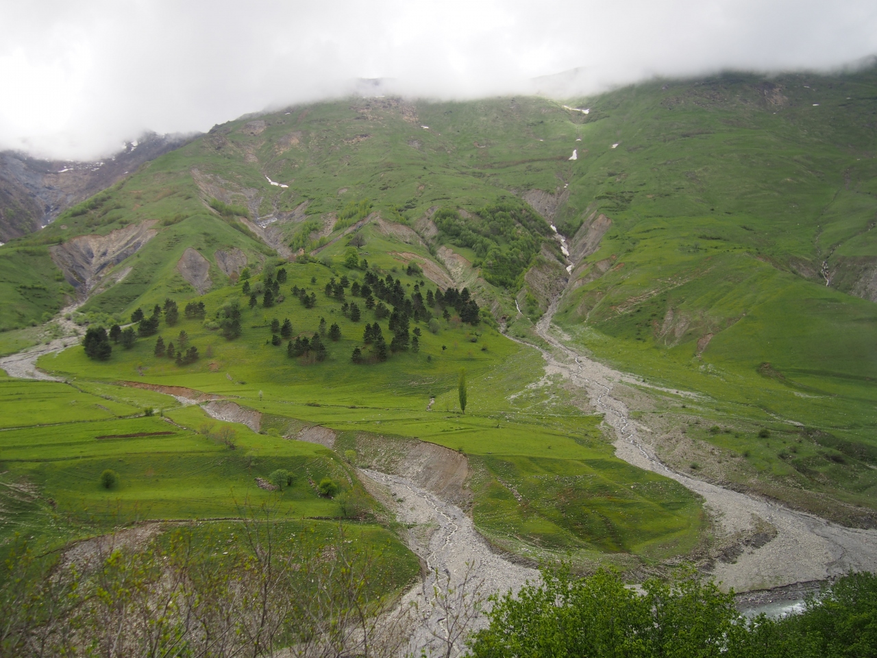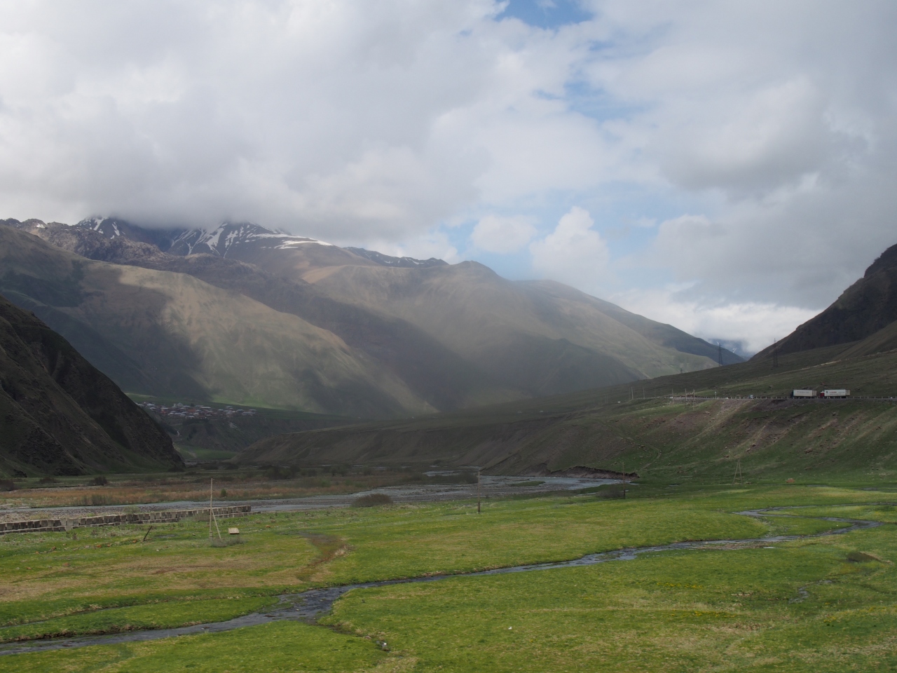グルジア軍用道路は最高標高地点は2395mです。 おおよそ2000mほどの場所をドライブしたり、 歩いたりすることになります。 平地よりは10度以上気温が低いと思われます。 訪れた5月はトビリシでは昼間は20度を超えていましたが、 軍用道路では最高気温は10度ほどです。 フリース、ライトダウンなどが必要です。