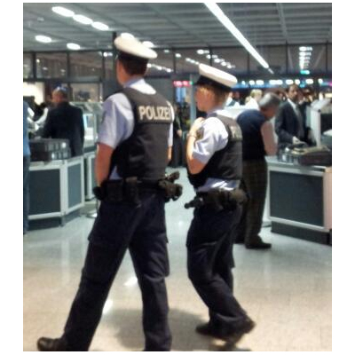 フランクフルト国際空港には、警備の警察官がたくさんいます。