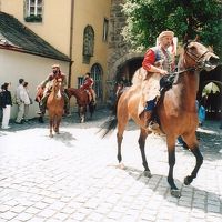 ロマンチック街道でも中世の雰囲気を最も残すローテンブルグ。この町並みを見て回るだけでも楽しいのに、私たちは丁度精霊降臨祭というお祭りに遭遇することができた。街の人たちが男性も女性も中世の格好そのままでお祭りに参加する。ローテンブルクならではのお祭りで外国人だけでなくドイツ国内からも大勢の人たちが見物に来る。