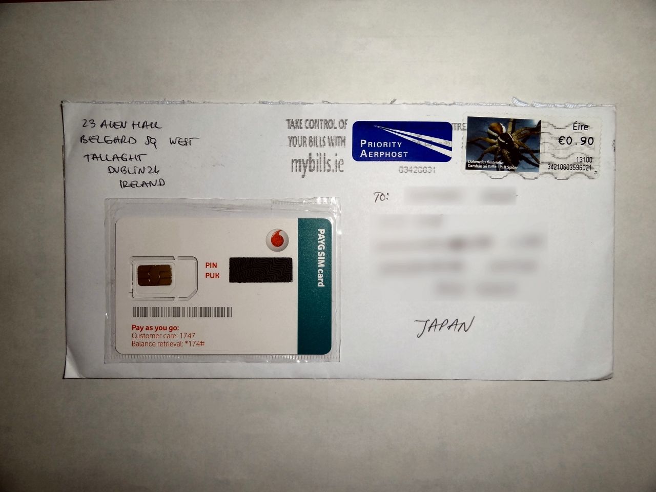 私の場合、simの値段が約5ユーロ、ドイツからの送料が約3.5ユーロで、当時の