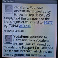 (5)そのままSIMフリー携帯をヨーロッパに持込み、ローミングをONにすると現地で使用可能になる。使えるようになると、SMSが届く。