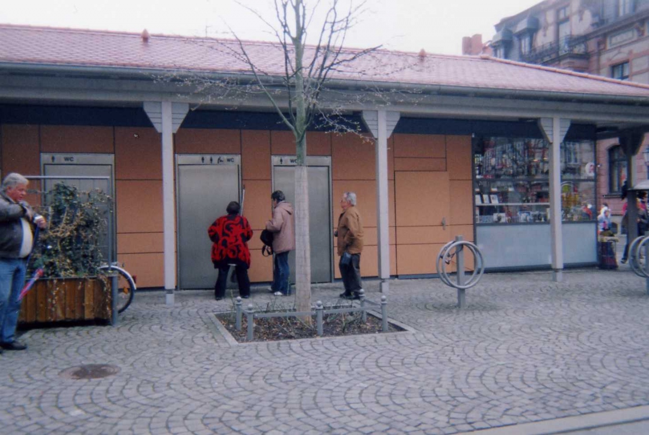 トイレ事情 毎年ドイツへ行って毎年感じることはトイレ銭が年々値上がっているということです。 20セントだったところが50セントになり70セントになり1ユーロ、1.2ユーロ今回、写真のヴェルニゲローデの公衆トイレは何と1.5ユーロでした。おしっこしただけなのにぃ・・・ カメラ持って入ればよかったんですが、やはり便座は無くステンレス製の便器でした。ただし、便座の幅は広く、座っても落っこちないサイズです。 もし我慢できるなら市庁舎の裏のトイレは50セントでした。 もちろんホテルを出る時に済ませてくるのが一番ですが私のようにトイレが近いかたご用心! 只の公衆トイレは出るものもひっこむほどバッチイですし・・