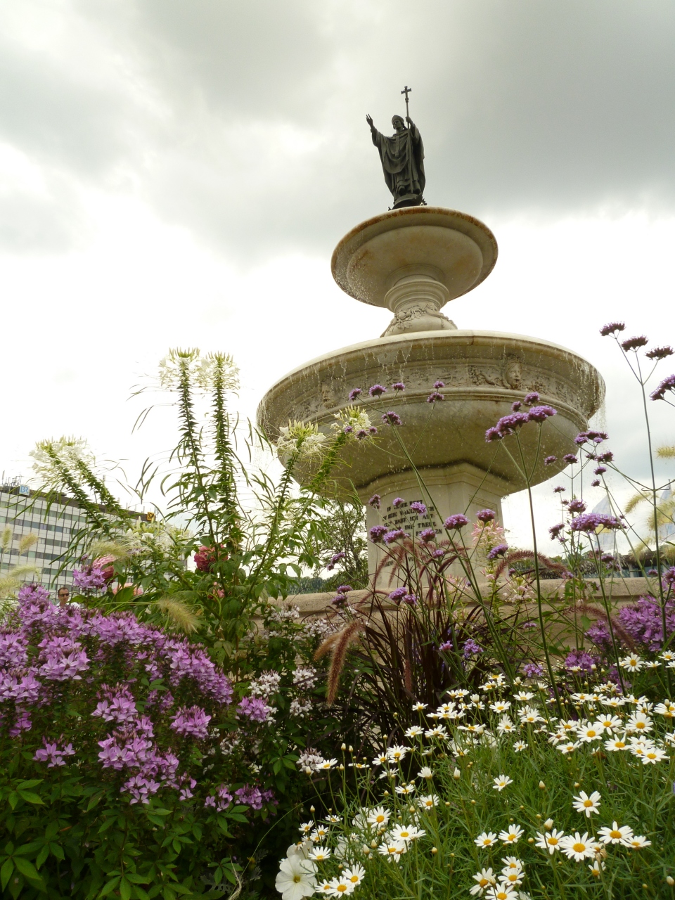 また、レジデンスの前に建っている噴水は、真ん中がフランコー二ア(伝説の女神)その下右下、彫り物をしているのが、リーメンシュナイダー(彫刻家)