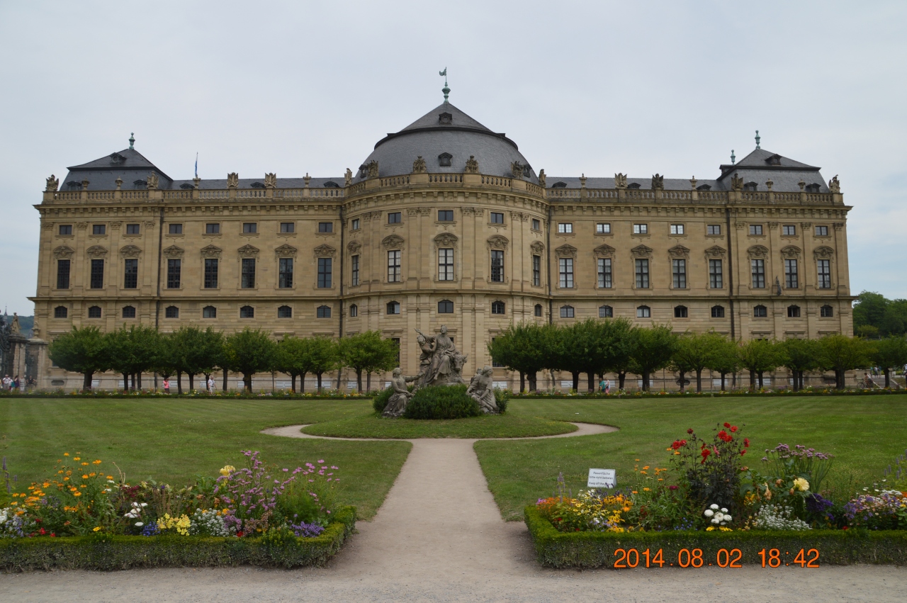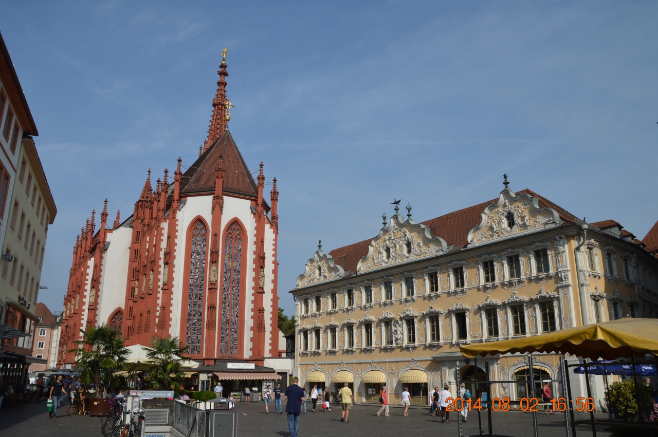 2014年8月2日にフランクフルトから鉄道で日帰りしました。朝の10時頃に快晴のヴュッツブルク駅に着いた頃は多少の肌寒さがありましたが、マルクト広場では朝市が並び、地元の人々が新鮮な野菜や果物を買っていました。ここからは半袖1枚で街を散策し、ストリートレストランのビールがとても美味く感じました。