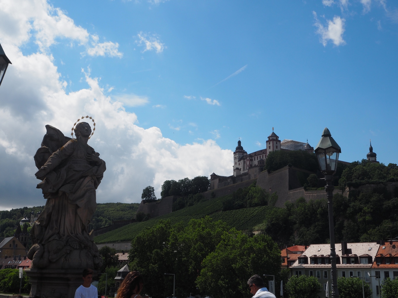 6月中旬にヴュルツブルクを拠点に周辺を観光しましたが、真夏のような暑さでした。数日前までは半袖の上から長袖をはおらなければ肌寒いほどだったのですが。30℃近い気温だったと思います。天候は雲1つなく日射しが強かったです。