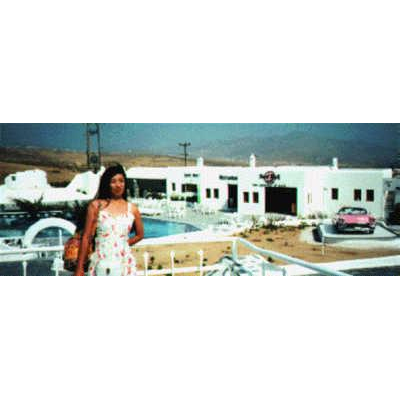 何もない場所に突然現れる「ハードロックカフェ・ミコノス」のピンクのアメ車は笑えます。ここでブランチを済ませ、ロゴ入りのTシャツや使捨てライターを調達してから、港に戻りました♪でもそこで買ったタンクトップはいまでも勿体無くて着ていませんが、ギリシャ語の「ミコノス」という表記が可愛いのでお気に入りです。