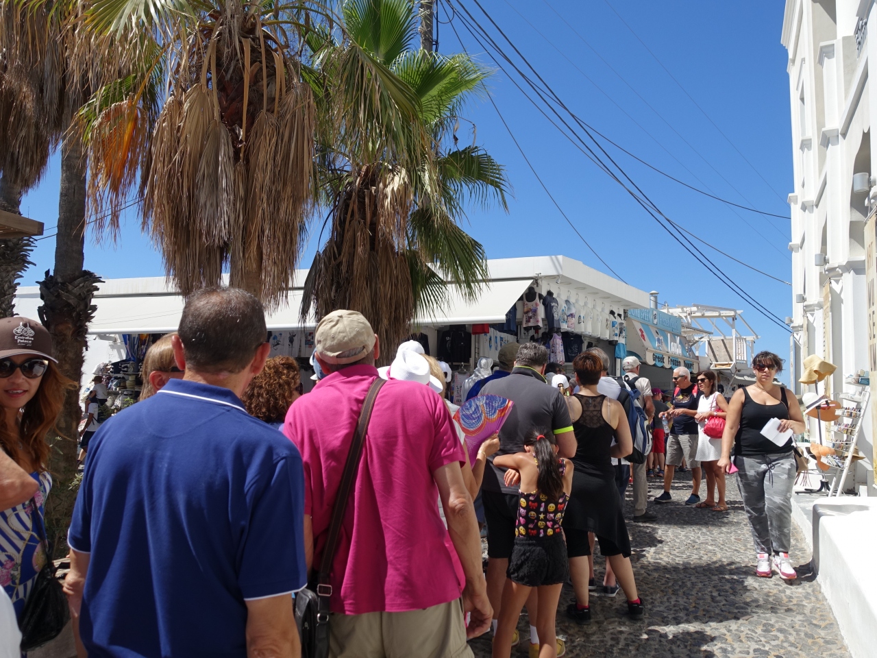 8月のサントリーニ島はとにかく観光客が多いです。夜でも人通りがあり、とても治安の良い島だと思います。