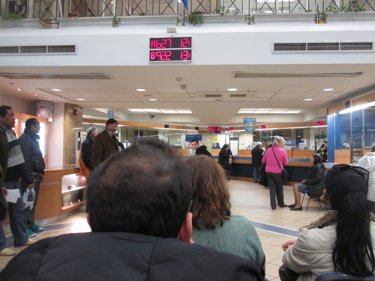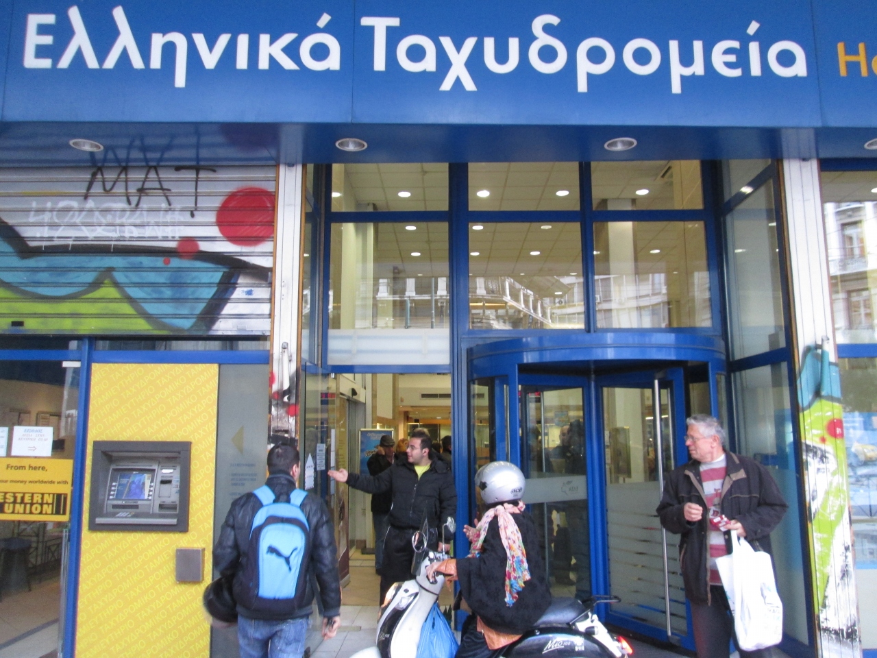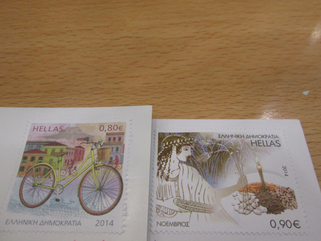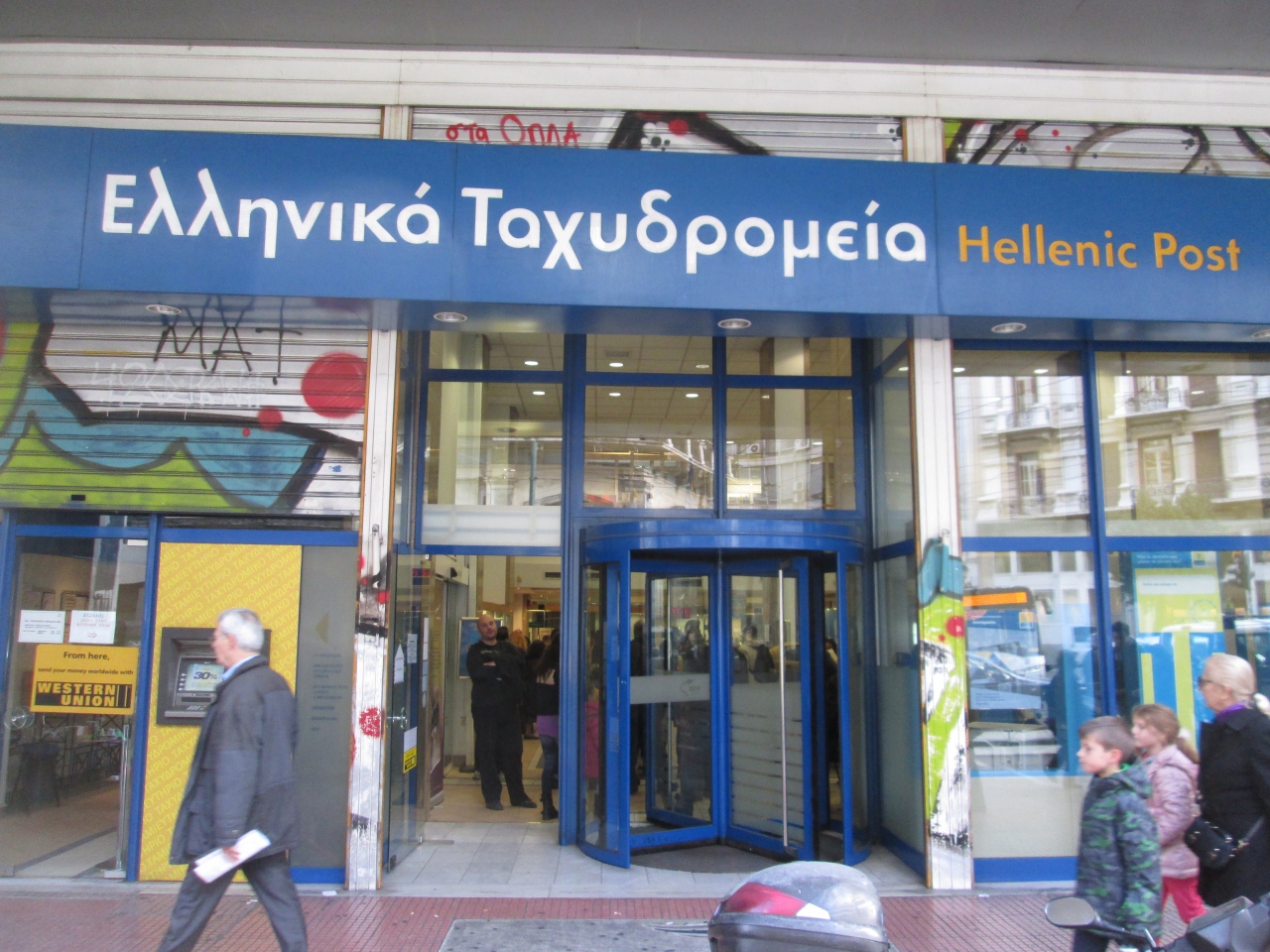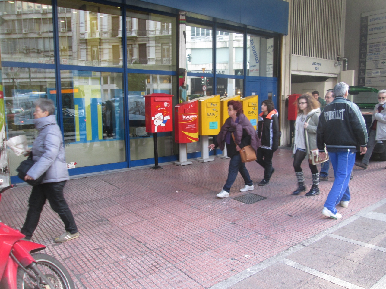 アテネ滞在中に手紙と絵葉書を日本に送るため、オモニア広場近くの郵便局を利用しました。窓口では英語で日本に送りたい旨伝えると切手を渡してくれ、あとは自分で切手を貼り黄色いポストに投函して終了です。日本に送るのに手紙は1通0.9ユーロ、絵葉書は1通0.8ユーロでした。