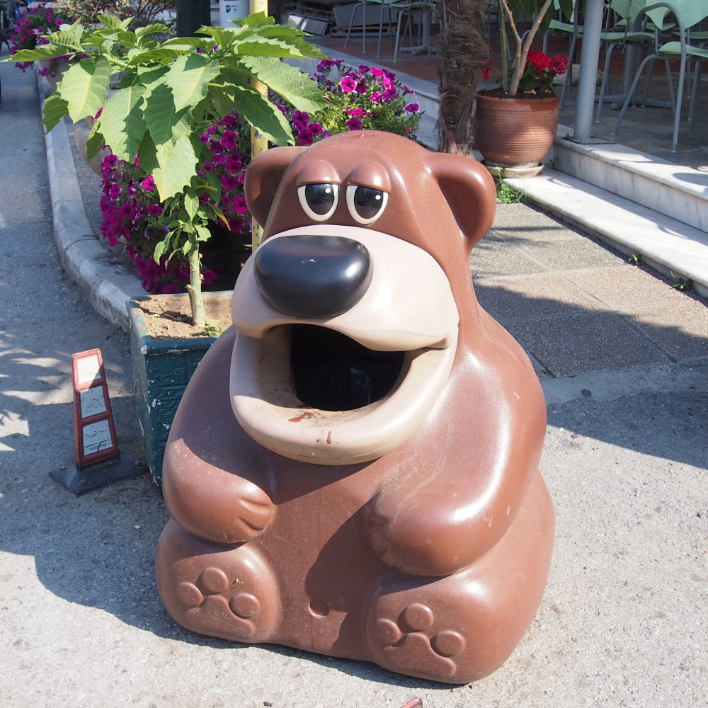 海のそばの小さな街は、街中に置かれているゴミ箱が
