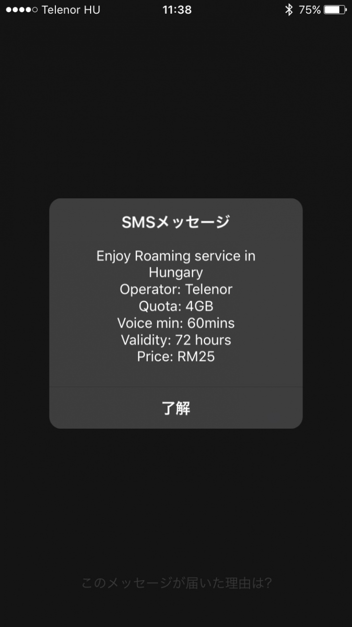 回線を開通させたタイミングと、国を超えるタイミングでSMSが入りますが全く気にしなくて大丈夫です。