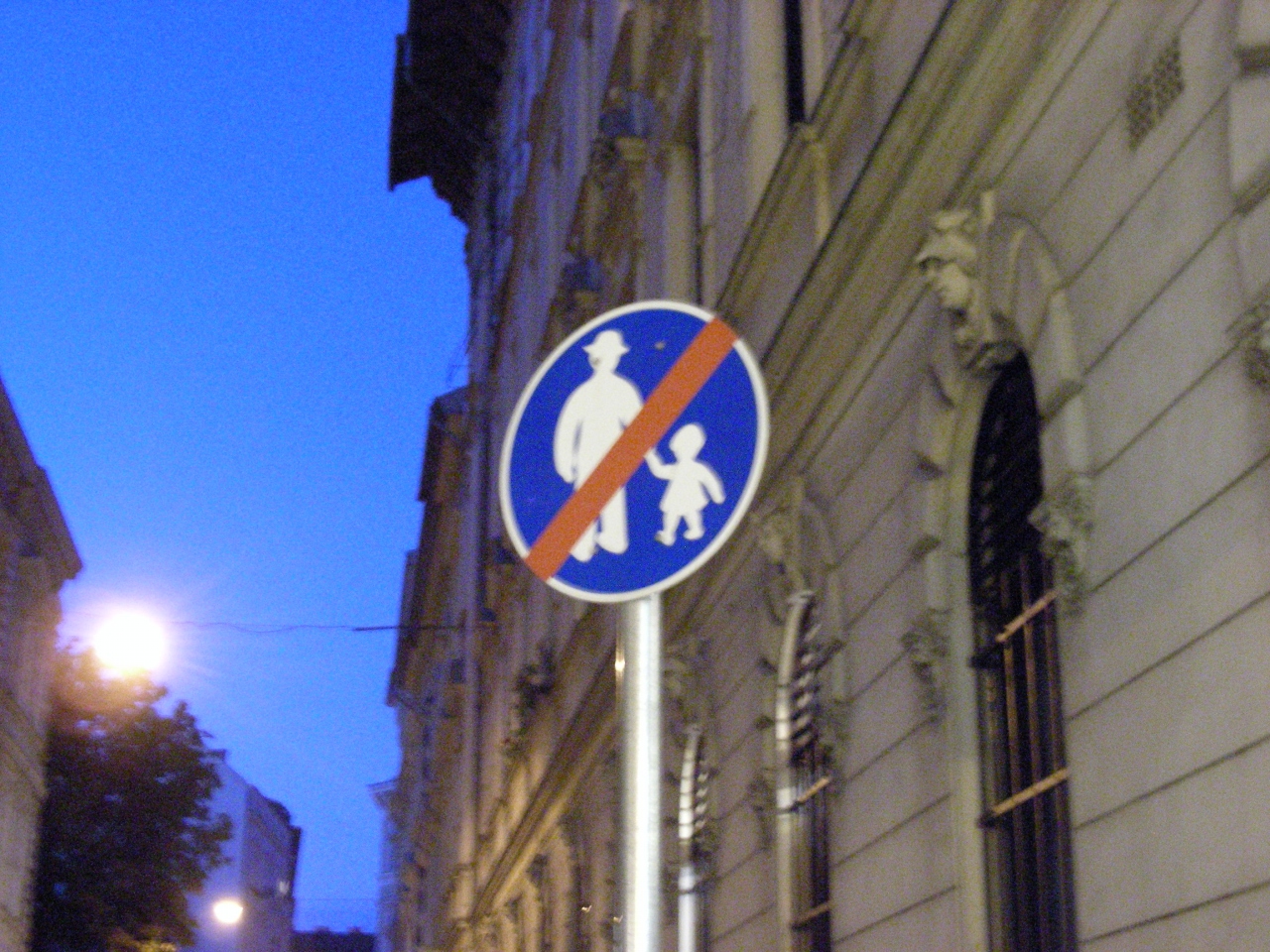 誘拐に注意かな?と思ったら、「交通量が多いので、歩行者通行禁止」という意味だそうです。