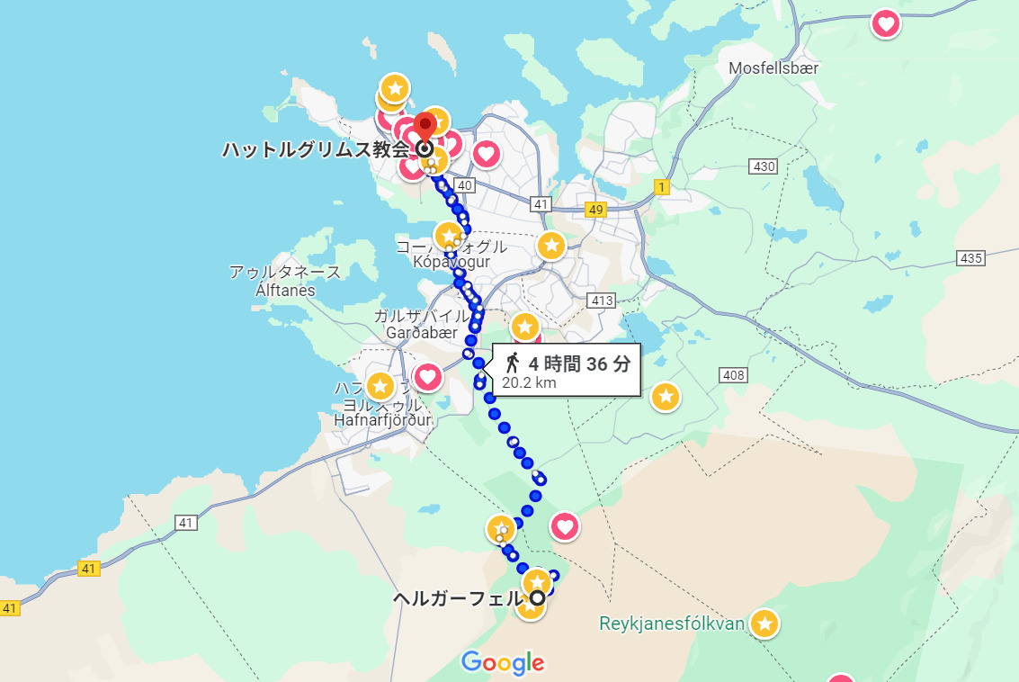 19番バスに乗って、Ásland IIIというバス停から歩く方法もあるがそれでも駐車場まで徒歩50分ほど。