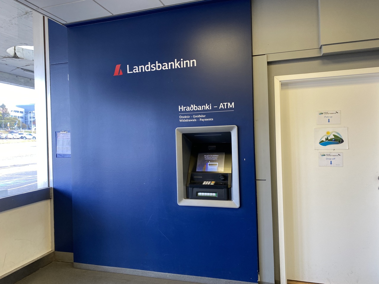 そのため、そもそもキャンプしない人や市内バスを乗らない人はアイスランドクローナを必要とする場面がほとんどないため、空港で1-2万円分くらいATMから引き出せば十分かと思います。ちなみにレイキャビク市内を歩いているとATMは割と多く見かけたので、空港で急いでお金を引き出さなくても問題ないです。