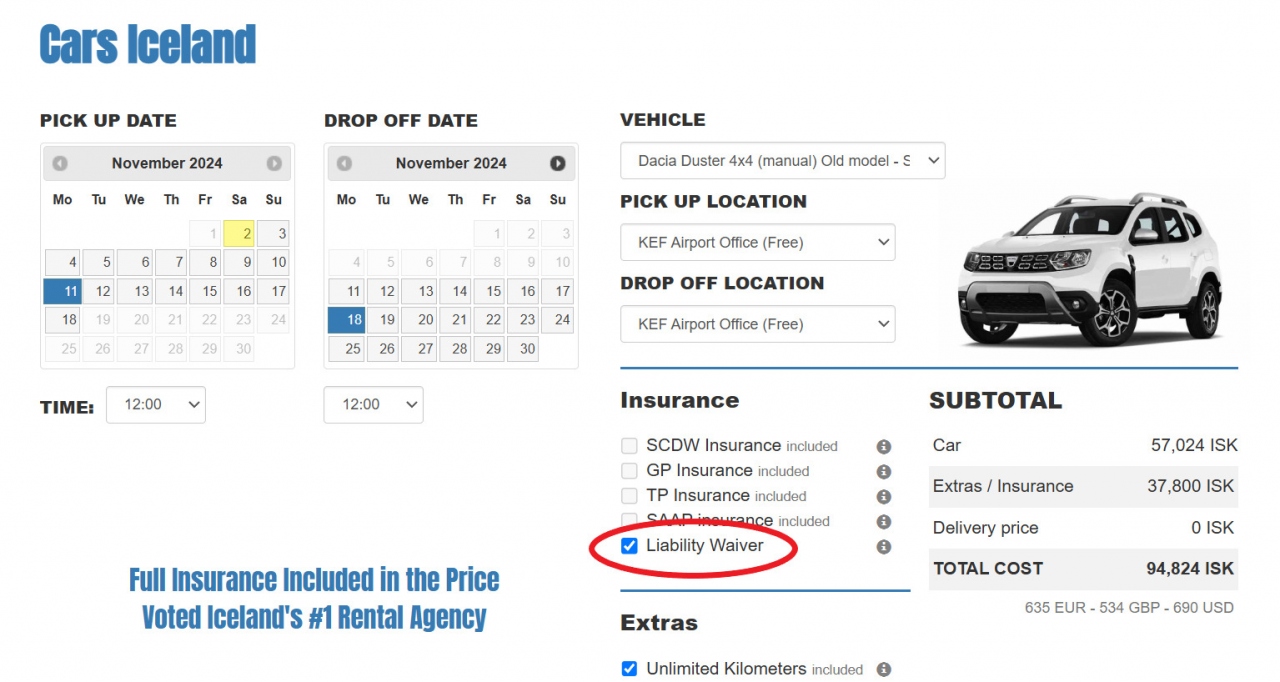 なお、Blue Car Rentalで直接予約してもいいのか、と疑問に思われるかもしれませんが、私自身もCars Iceland内で保険の話や緊急時の対応をするものと思っていたので、毎回Cars Icelandで予約した際に「Blue Car Rental」に連絡するように言われるのかは謎です。ただし、言えることとして、Blue Car Rentalは事故が起こった際の保障範囲は広いので、ちょっと危険な地域に行く際にはとても心強いレンタカー会社であると思っています。(実際に保険会社とのやりとりの様子は関連旅行記をご覧ください)
