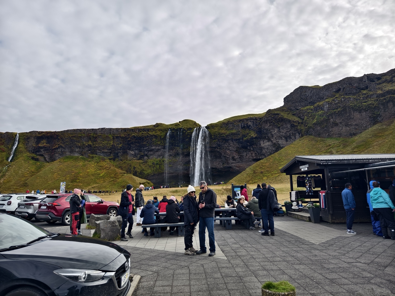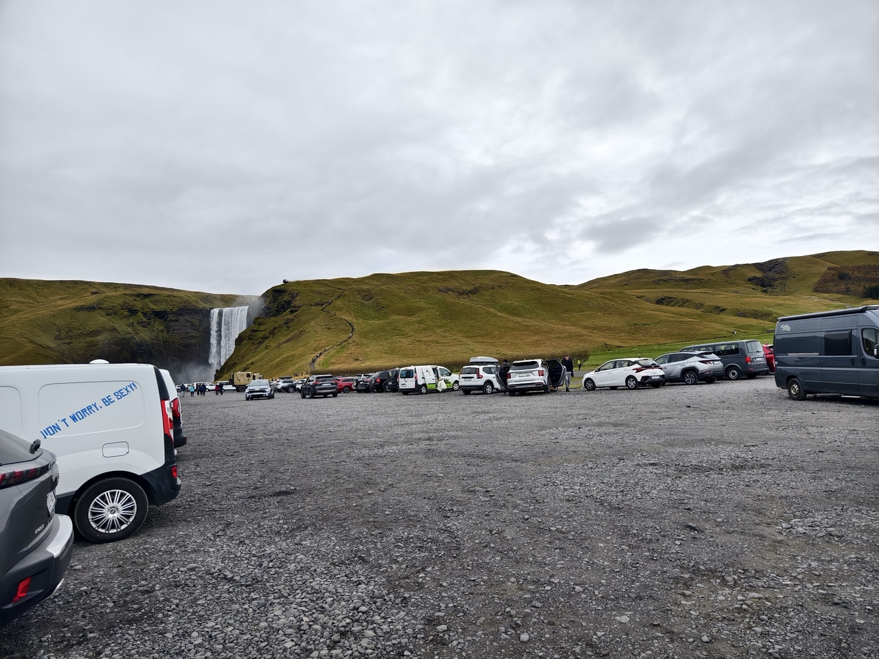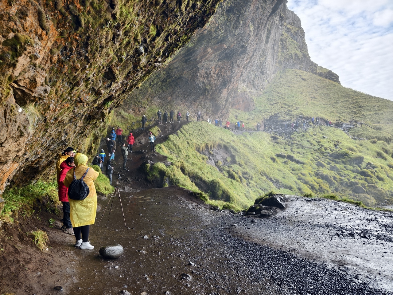 アクセスのしやすさや滝の迫力、また滝の裏側に行って行くことができるなどの珍しい体験ができることからアイスランド内でも屈指の人気スポットとなっています。午前10時以降は多くの観光客、ツアーバスが発着して人だらけとなるので、可能であれば午前の早い段階で訪問するとゆっくり見学できます。