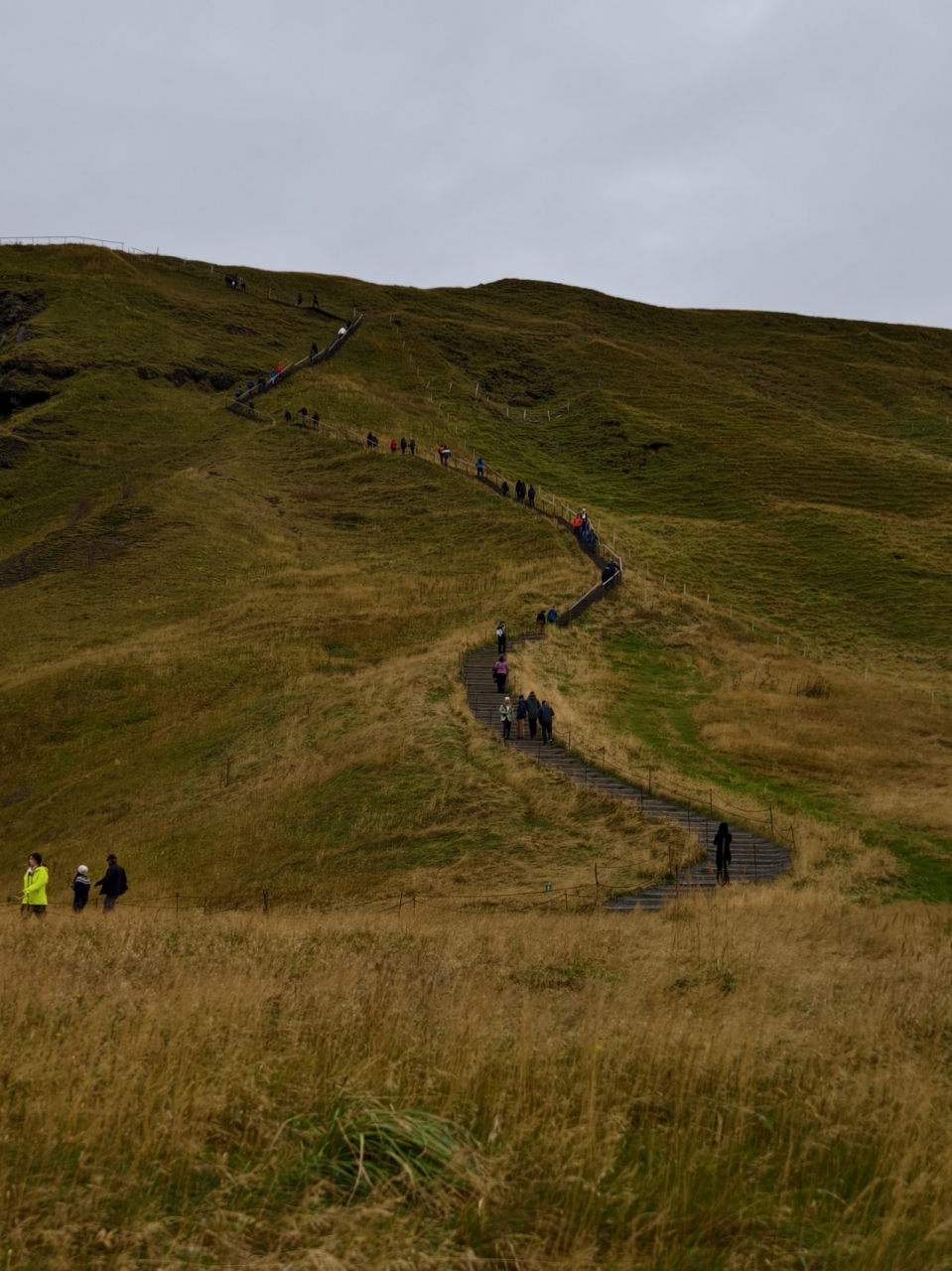 Skógafossの近くまでいって写真を撮るだけならばそれほど疲れませんが、Skógafossの横に併設されている階段は割と急なうえに段数も多いので登るのに苦労する。