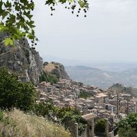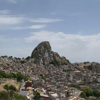 青いイオニア海を見晴らせる断崖上に広がる町で温泉も有名。