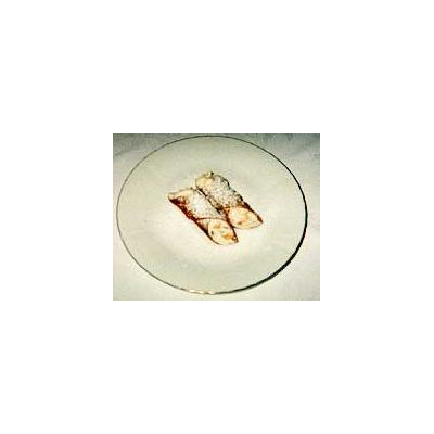 筒に巻きつけて揚げて、筒があった場所に、甘いリコッタチーズを詰めて食べます。