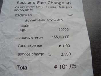 仕方なくローマでテルミニ駅近くの両替店に・・・