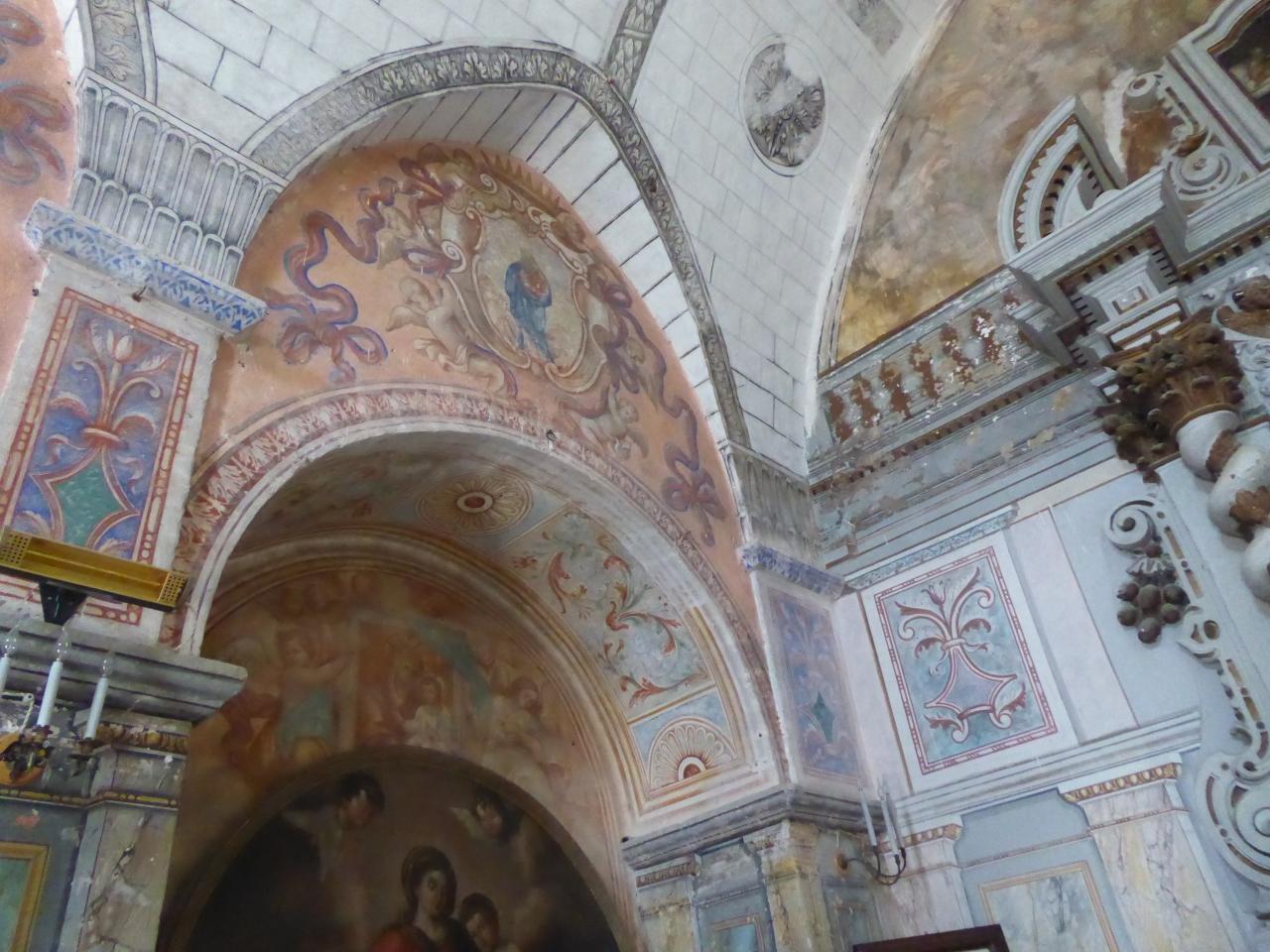 内部は小さいが、見事なフレスコ画で埋め尽くされている。