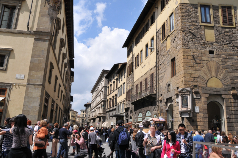 フィレンツェは、割と治安がよかった。人ごみでもスリにあわなかった。中央市場のそばを夜通ったら屋台を片付けている人たちが何人もいてちょっと怖かったが、実際何事もおきなかった。ただ、ドウモのそばやベッキオ橋などやたら人が多かった。一部車両禁止のところがあり歩く人が道いっぱいに広がっていた。歩きタバコの人もいるので注意。