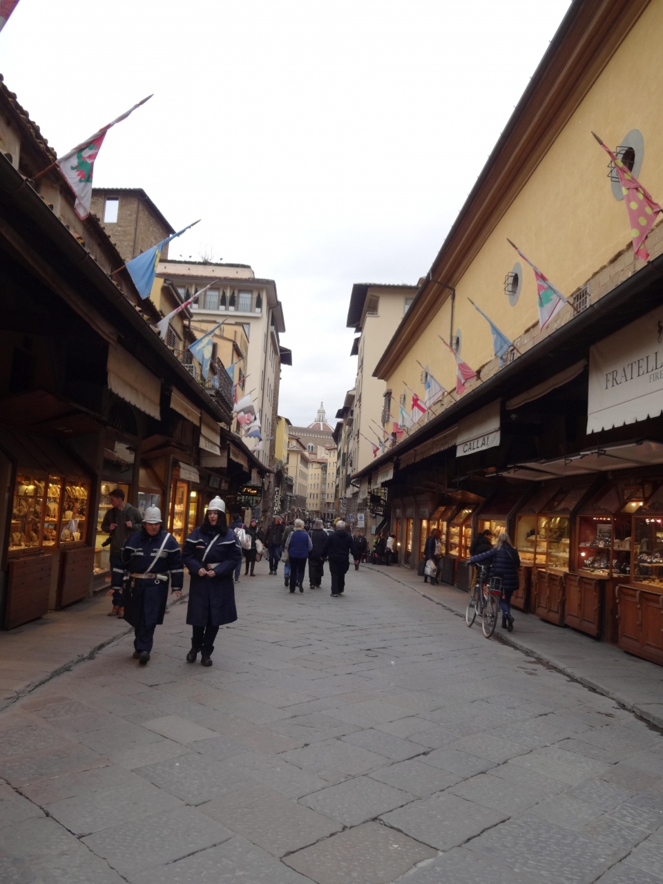 夜は駅近くでも暗いところはあったのですこし恐かったのですが、人はところどころ歩いていました。昼間は観光客がたくさんいて安心できました。駅からドゥオーモ、ヴェッキヲ橋辺りを主に観光しましたが、特に危険な目にはあいませんでした。