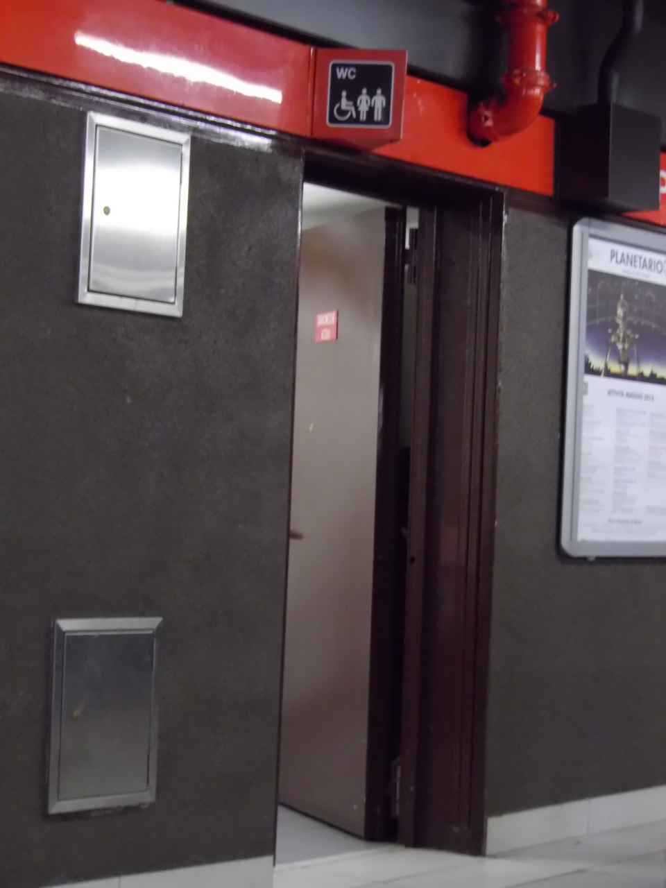 ミラノDuomo地下鉄駅のトイレは構内の通路にありますが、入口から入ると左側に料金を徴収する人がいます。