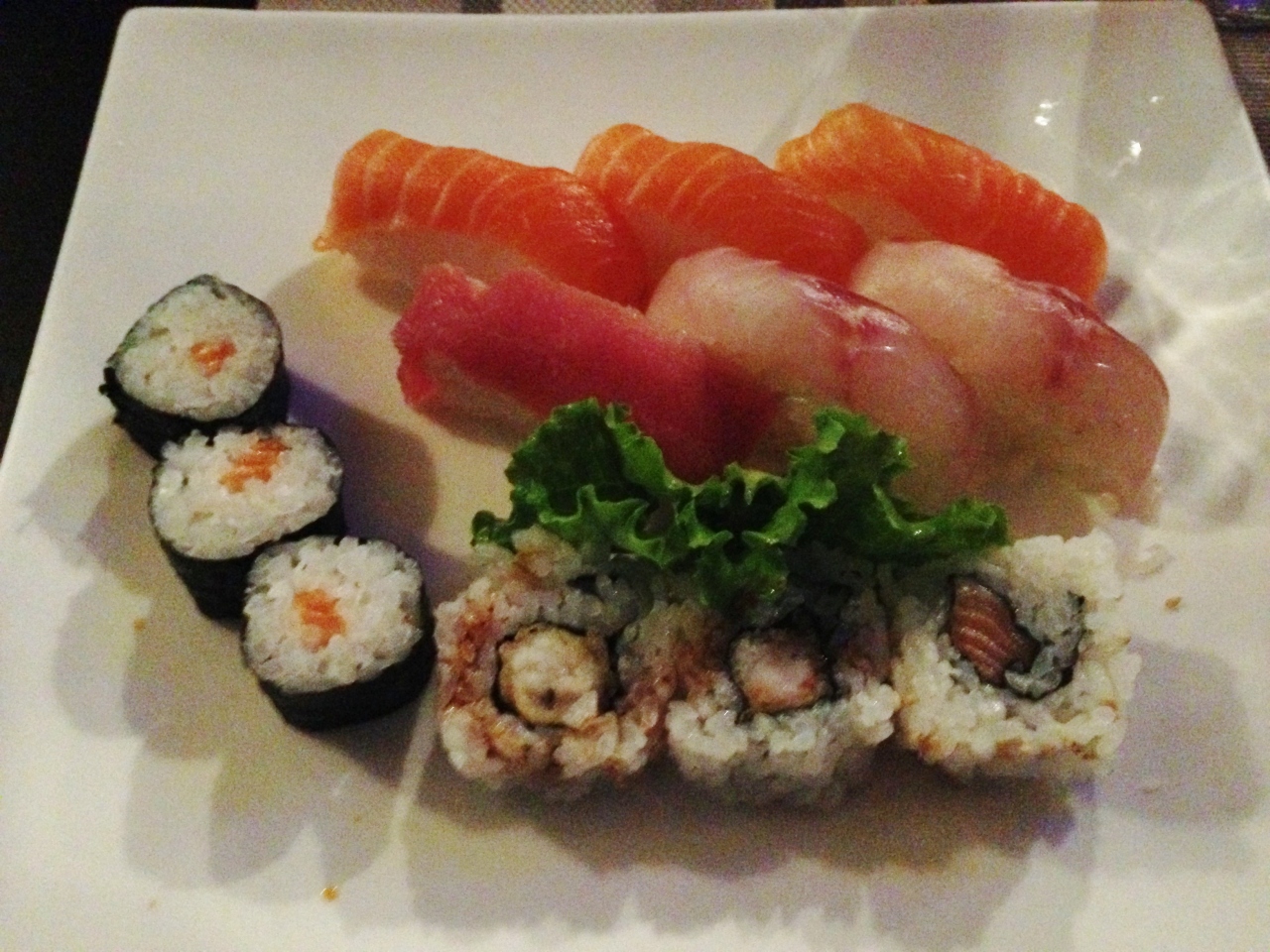 中華料理を提供する店ですが、ハッピーアワーをオーダーすると寿司の盛り合わせが(かならず)付きます。中国人が握るこの寿司に、及第点をつけるかどうかは評価が分かれますが・・。ビュッフェコーナーには色々な中華が並び、味噌汁もありました。果物でおしまいにした時は満腹になりました。