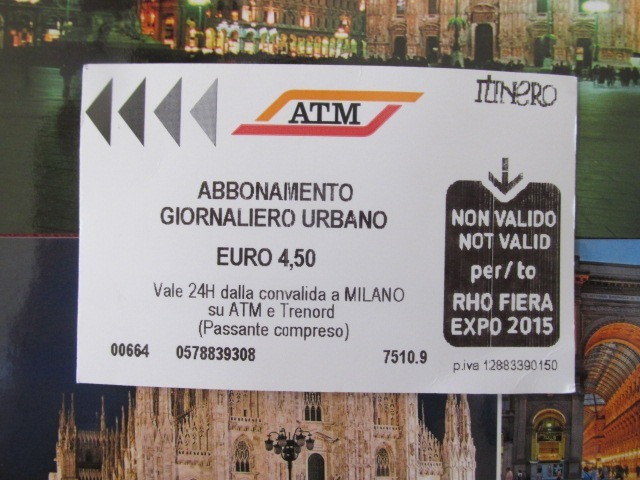 但し、エキスポが行われている会場はミラノの郊外にあるので、このチケットは利用できませんのでご注意くださいね 。
